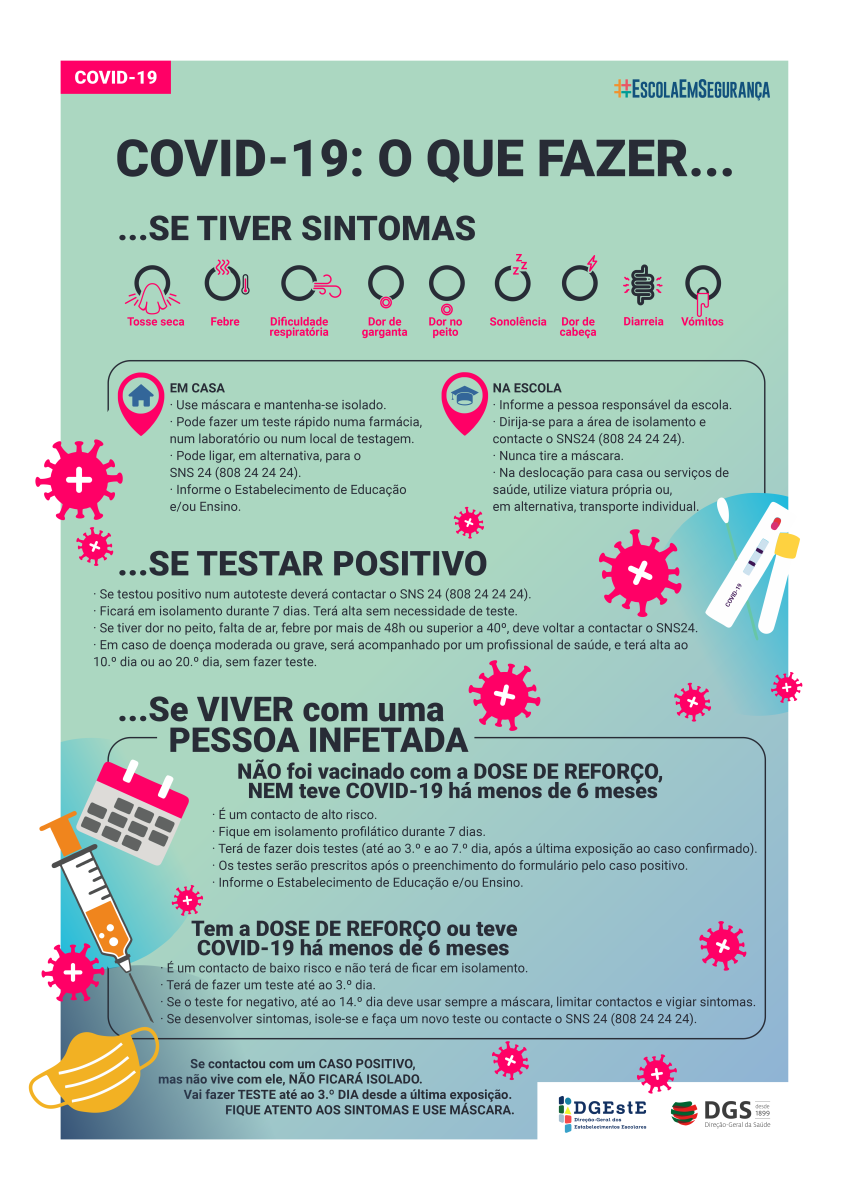 A Direção-Geral dos Estabelecimentos Escolares enviou às escolas material com as mais recentes atualizações da Direção-Geral da Saúde, no âmbito da "Escola em Segurança" para respetiva divulgação.