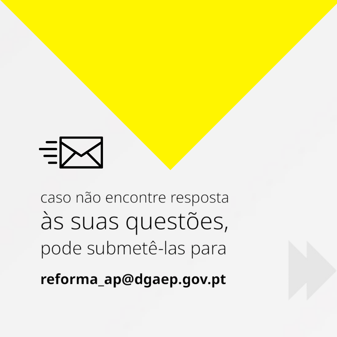 - Não fique com duvidas! Submeta as suas questões para reforma_ap@dgaep.gov.pt.